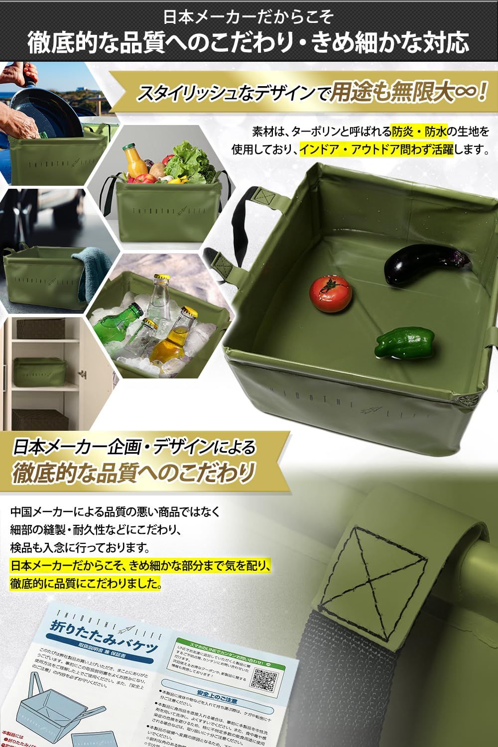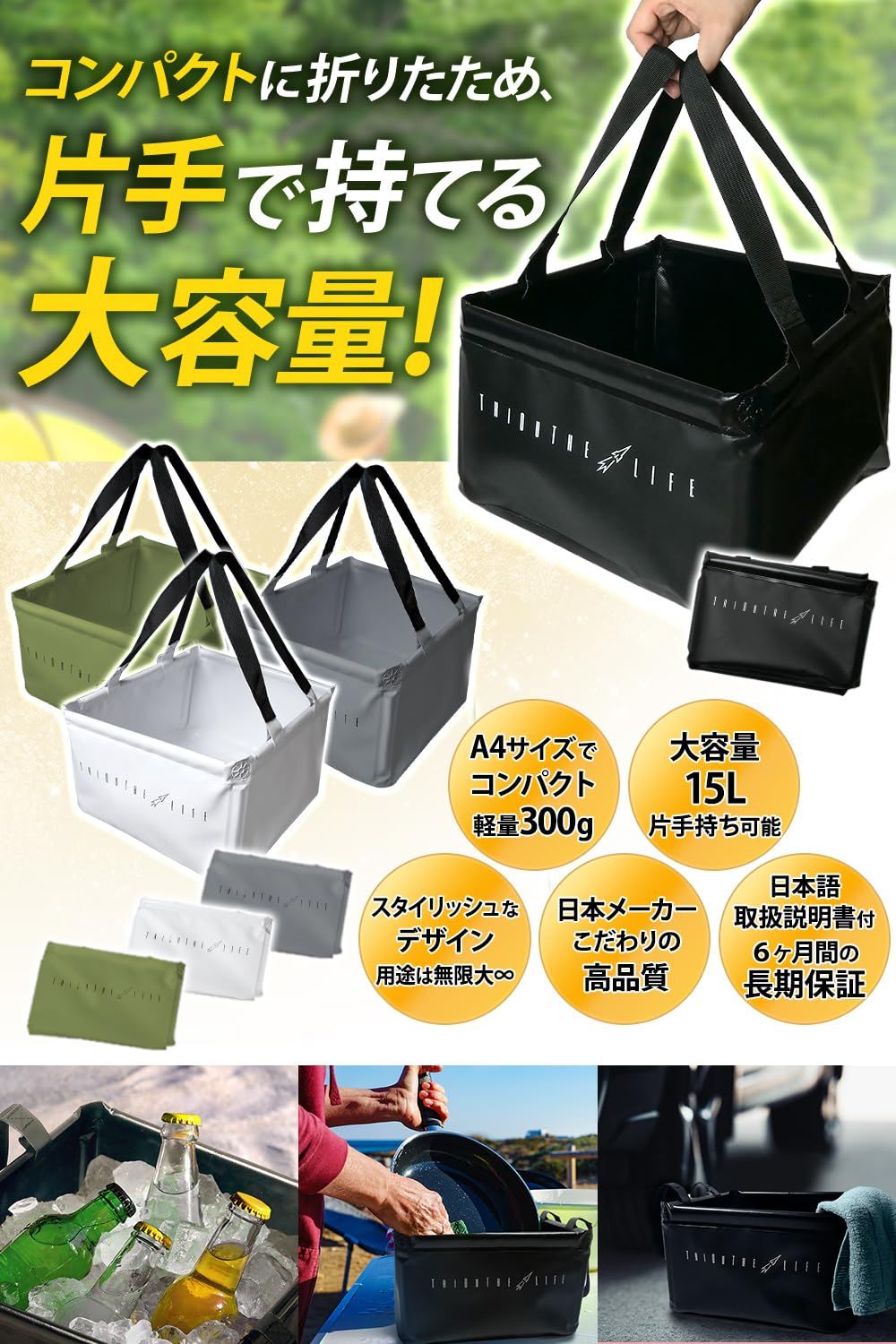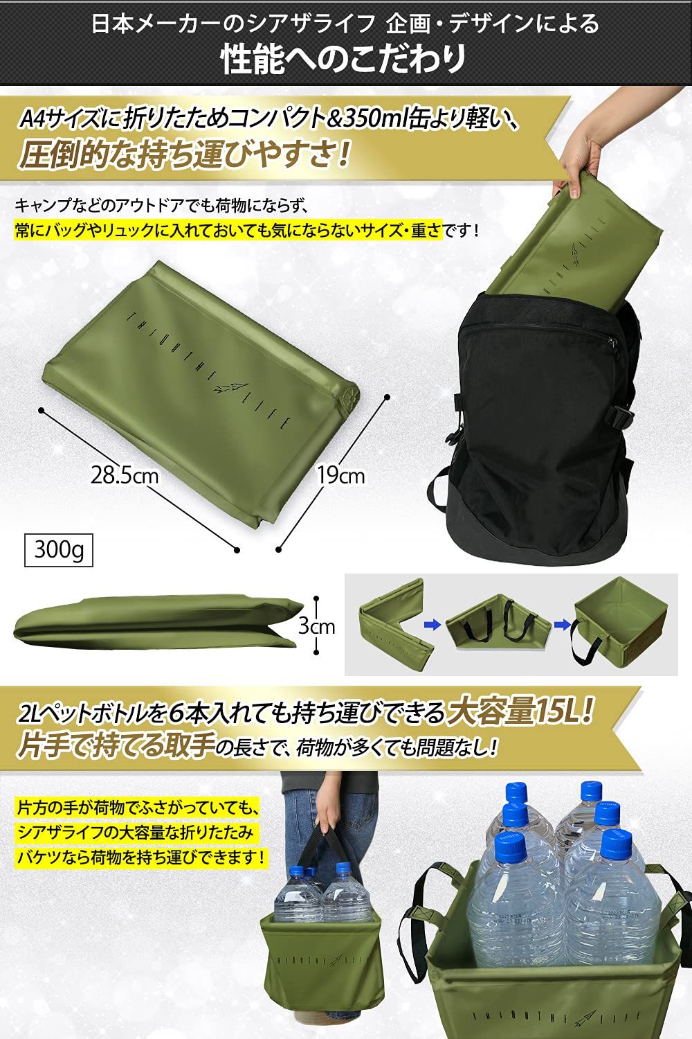 シアザライフ 折りたたみバケツ キャンプバケツ ジャグ フィールドラック 小物入れ 折り畳み 片手持ち コンパクト 四角 大容量 15L アウトドア 釣り 洗車 洗濯