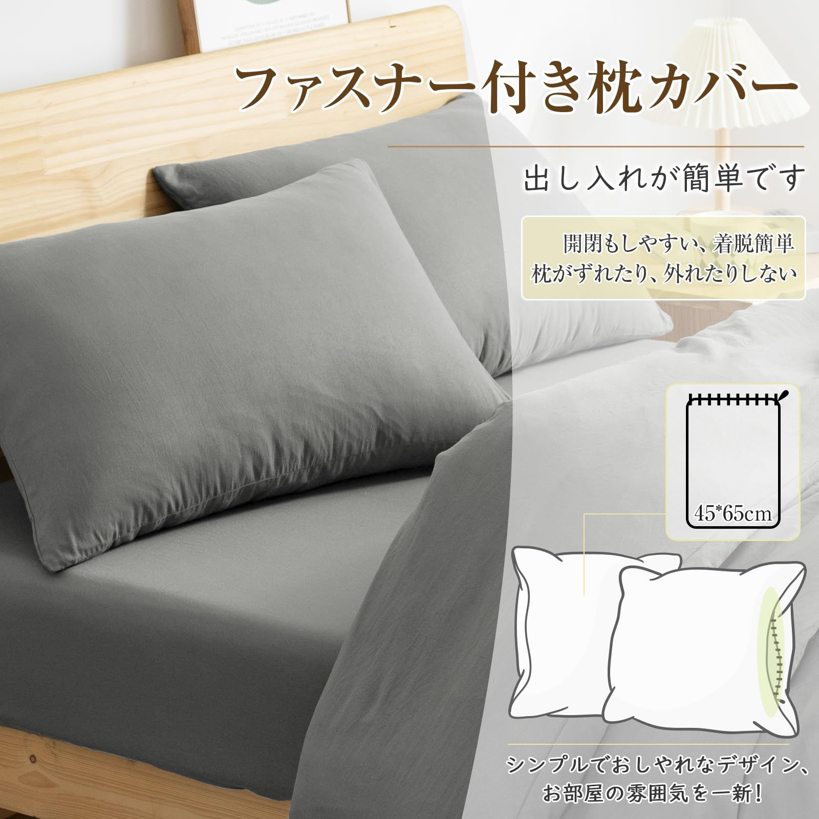 Housecover 布団カバー シングル 3点セット 寝具カバーセット【水洗い加工&超柔らかい】掛け布団カバー 洋式ベッド・和式布団兼用 ボックスシーツ 洗いざらしシワ加工 やわらか 肌触り 吸水速乾 丸洗い 無地 シンプル オールシーズン(掛け布団カバー シングル・3点セット ライトグレー)