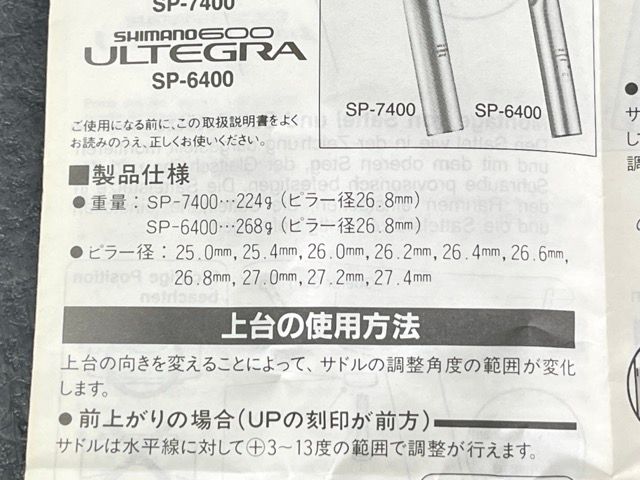 SHIMANO 600 ULTEGRA VIA AJ 26.8 SP-6400 シートポスト 【中古】シマノ アルテグラ 自転車用パーツ /515402