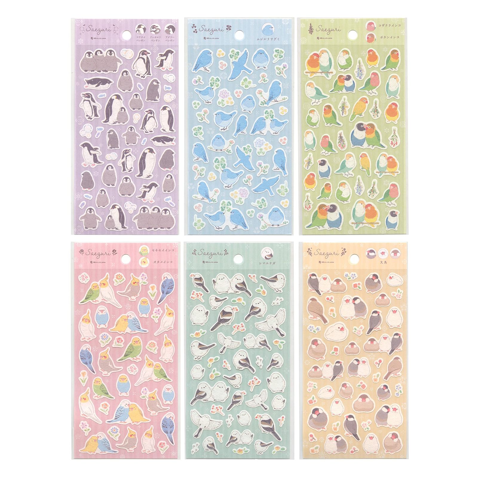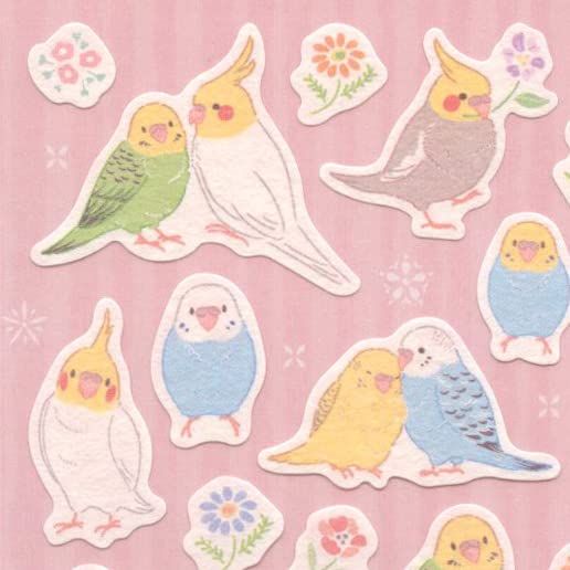 -さえずり-愛らしい鳥たちが心をほっこりさせてくれるシリーズ。お手紙や手帳などを可愛く彩るシールです。セキセイインコやオカメインコのかわいい仕草に癒されるデザインです。