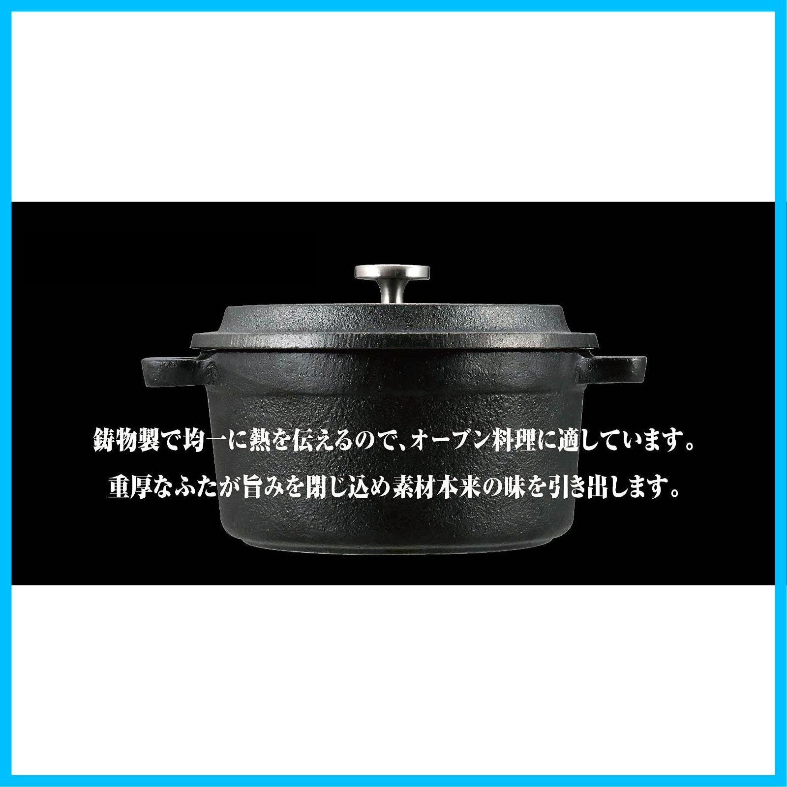表面加工:油焼き焼付塗装)、材料の種類:本体・ふた/鉄鋳物、その他の材料:つまみ/ステンレス鋼