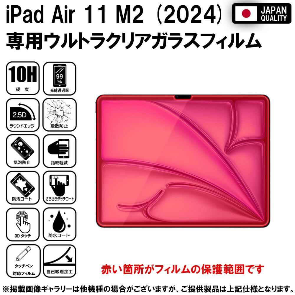 ■対応機種:iPad Air 11 M3 第7世代 2025用/ipad air 11インチ M2 第6世代 2024■安心の日本製素材 国産AGCガラスを使用。■第3世代製法の最新技術のW硬化製法(2次強化)ガラスで耐衝撃性を強化。