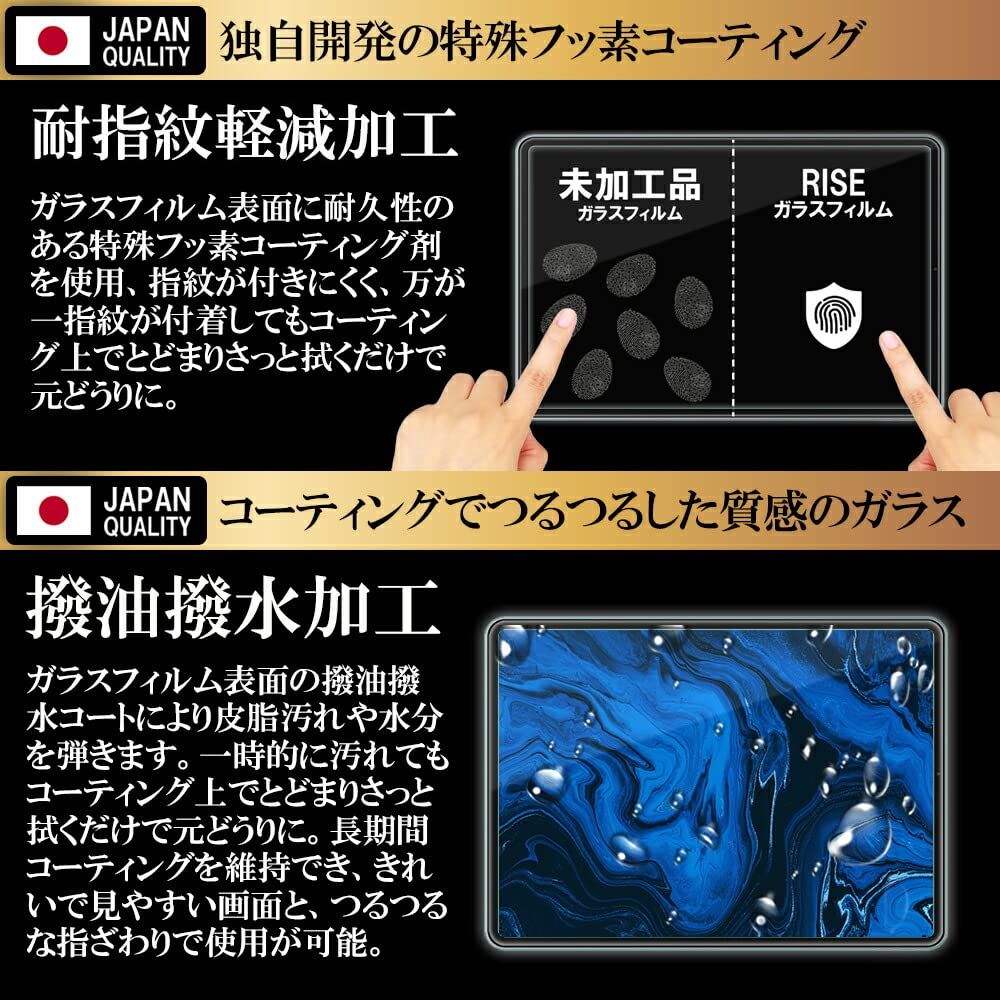 RISE フィルム iPad Air 11 M3 第7世代 2025 用/ipad air 11インチ M2 第6世代 2024 用 ガラスフィルム 保護フィルム 強化 ガラス 高透過 高光沢 日本製 旭硝子 硬度10H 2.5Dラウンドエッジ 自動吸着 気泡ゼロ 飛散防止 指紋防止 撥水撥油 3D タッチ