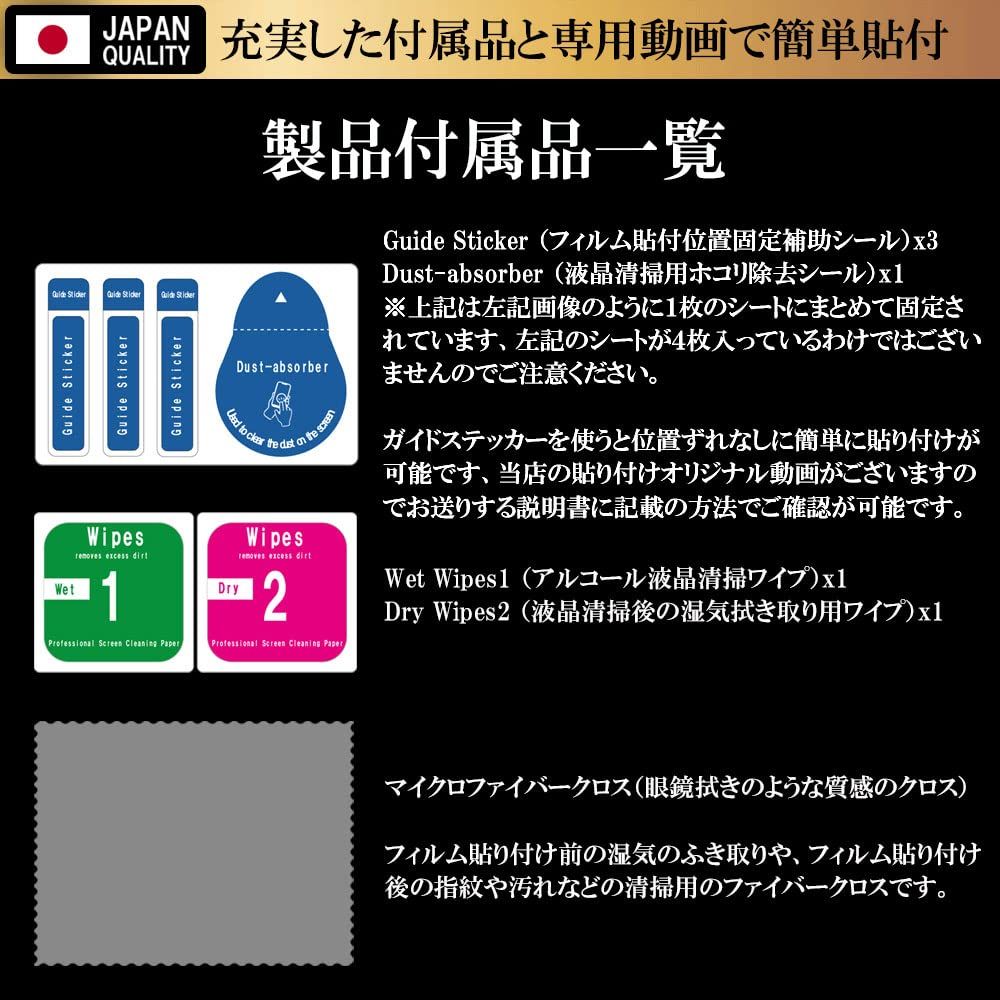 ■専用動画で簡単貼り付けが可能。■万が一貼り付けに失敗しても安心のお届け後15日間の貼り付け付き。■内容品:クリアガラスフィルム×1、ウェットクロス×1、ドライクロス×1、埃吸着シート×1、貼付説明書付属。