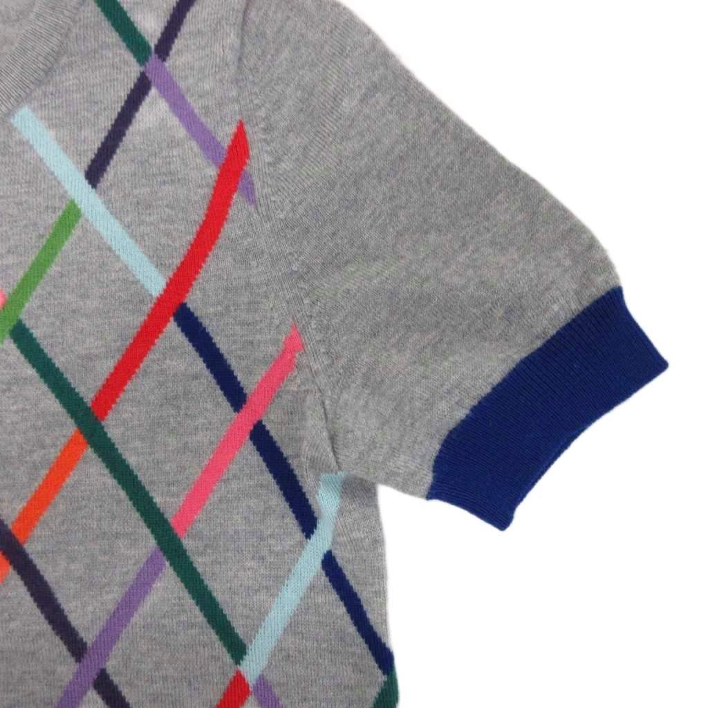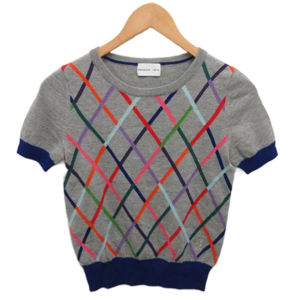 【商品名】プリングル Pringle 1815 ニット セーター 半袖 総柄 10 グレー 紺 ネイビー S5N04-601-07 ■YHS10