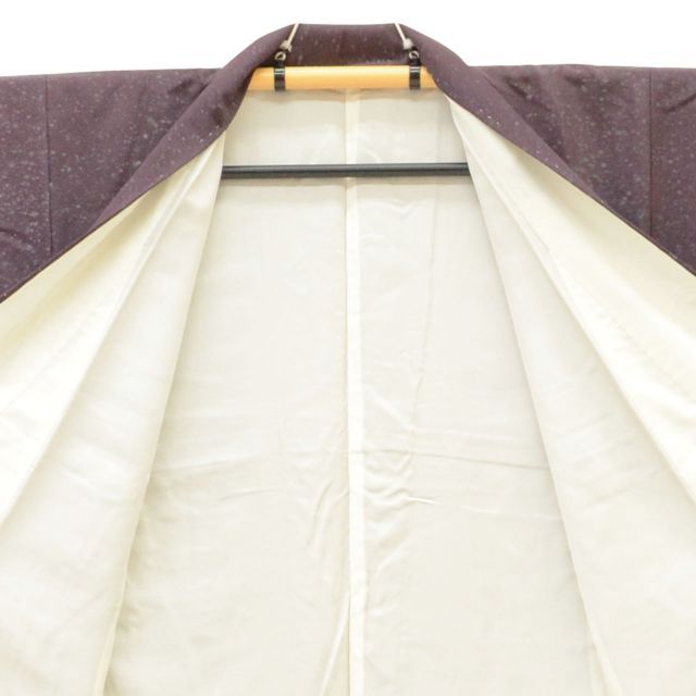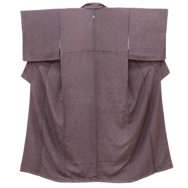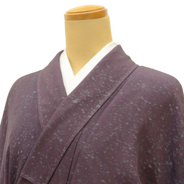 紫色の正絹色無地。一つ紋付きで、控えめながら上品な雰囲気です。