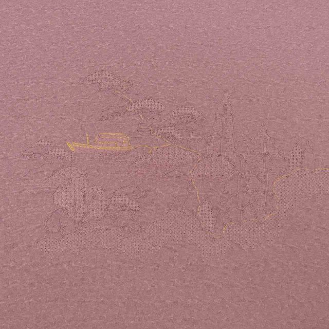 紫色に金閣寺文様が施された、女物の付下げのリサイクル反物です。