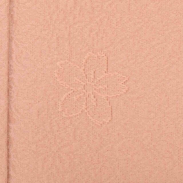こちらは「縮緬(ちりめん)」の技法を用いたお品でございます。縮緬特有のしぼ(凹凸)が美しい陰影を生み出し、深みのある風合いを醸し出しております。柔らかな手触りと、しなやかな落ち感が特徴で、優雅な着姿を演出いたします。ぜひ、この機会に日本の伝統美をお手元でお楽しみください。