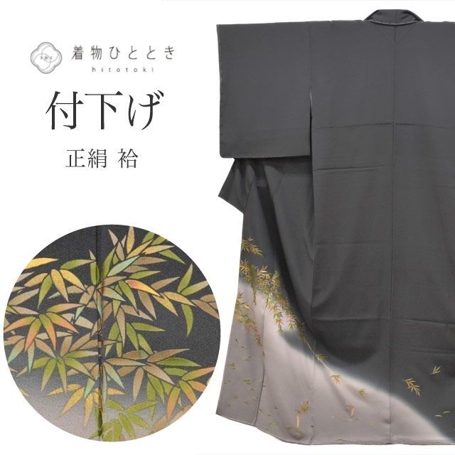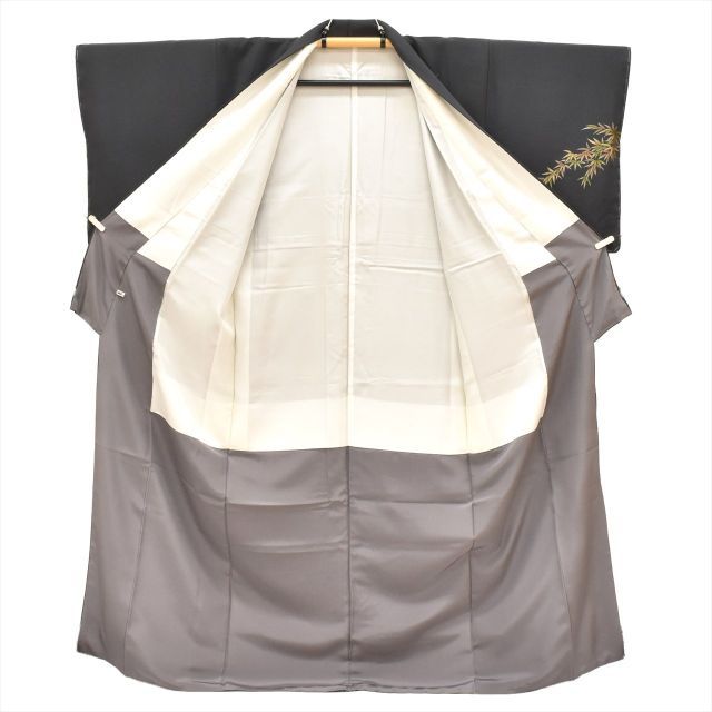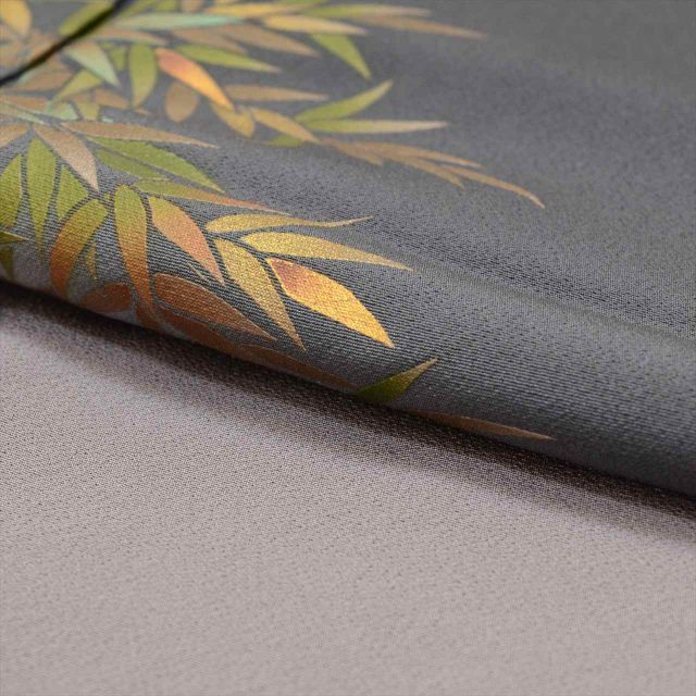 濃グレー色に竹文様があしらわれた気品が感じられるリサイクル付下げ訪問着です。