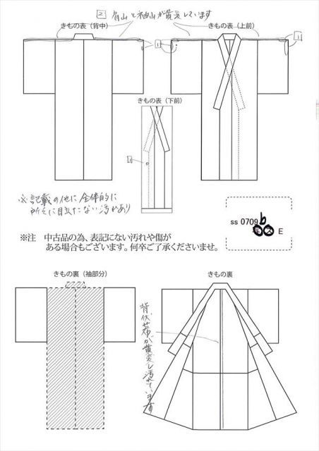 衿の折り山(着用時見えない部分)→目立たない汚れ有り