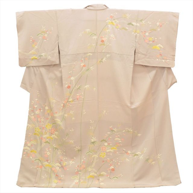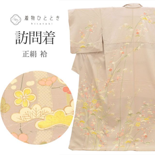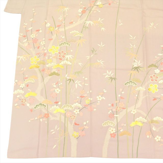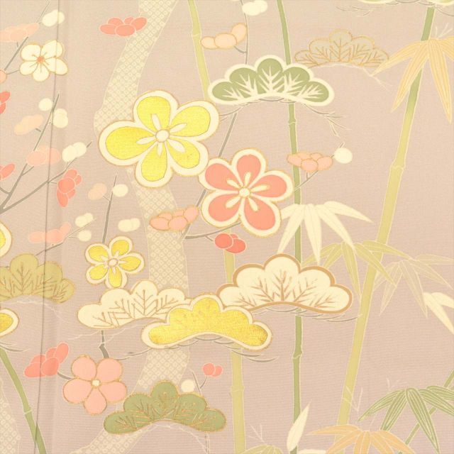 グレー色に梅などの文様があしらわれた上品さが感じられるリサイクル訪問着です。