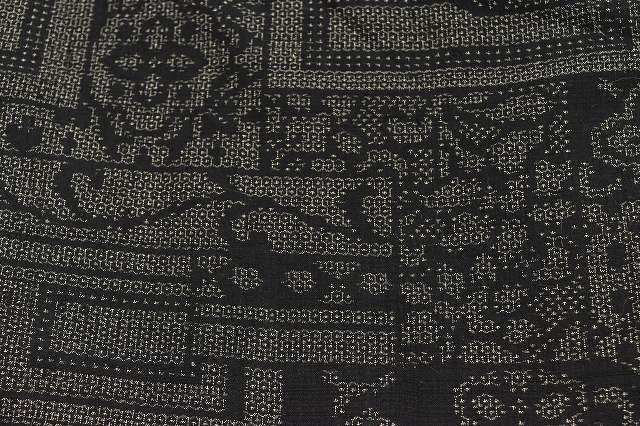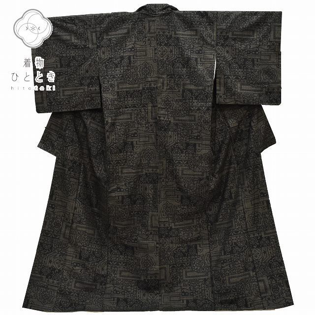 茶色地に亀甲絣文様が織り込まれた、趣のある結城紬の着物です。