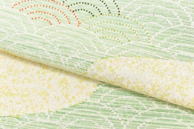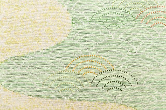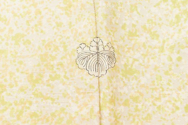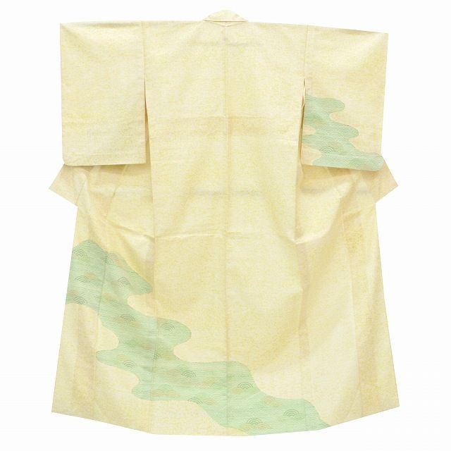薄い黄色地に青海波文様が施されたお洒落な牛首紬のお着物です。