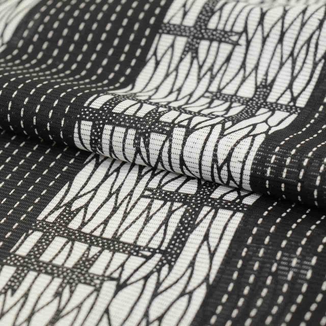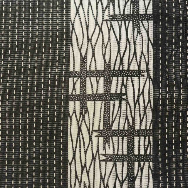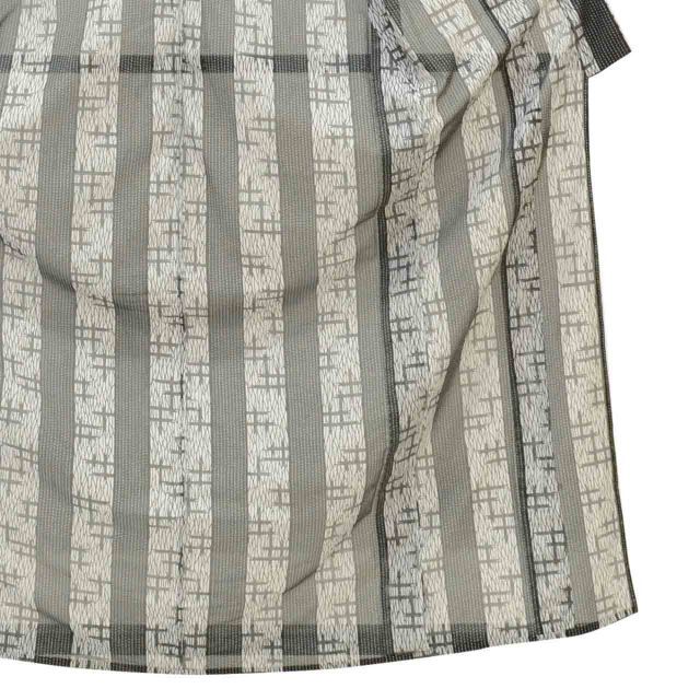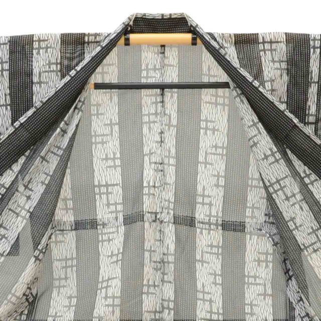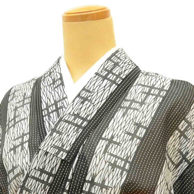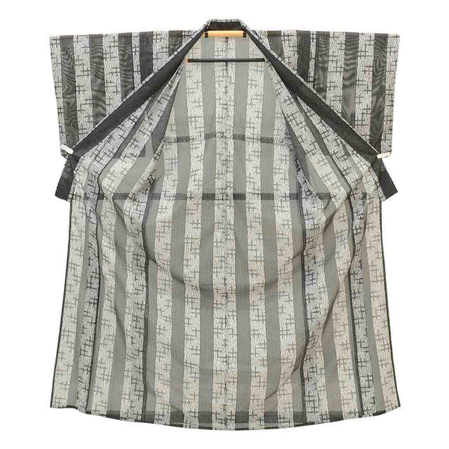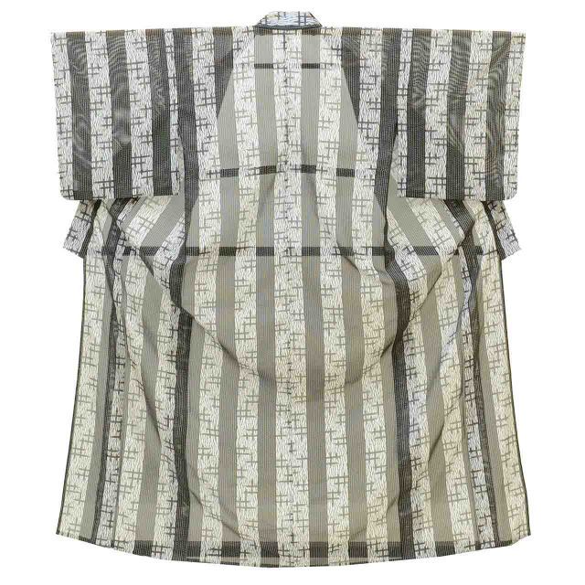 グレー色に絣や縞文様があしらわれた、お洒落なリサイクル小紋です。