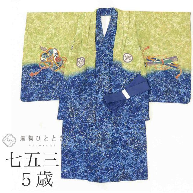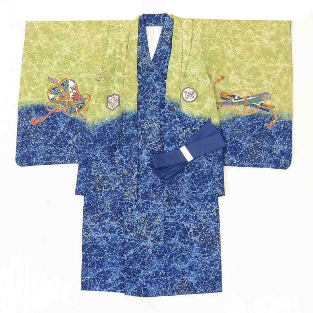 こちらは中古の七五三男の子五歳セット(着物、羽織)です。腰紐2本をプレゼント!