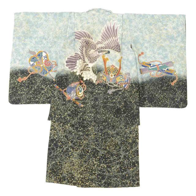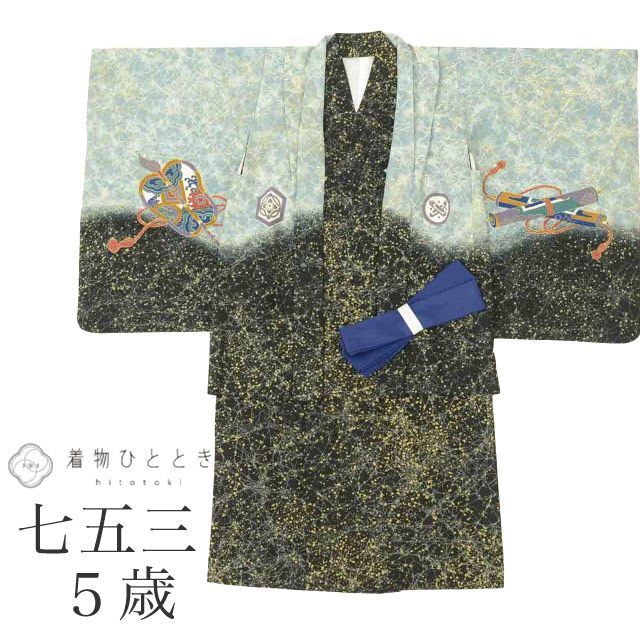 こちらは中古の七五三男の子五歳セット(着物、羽織)です。腰紐2本をプレゼント!