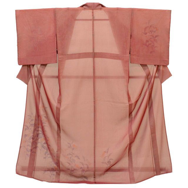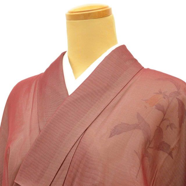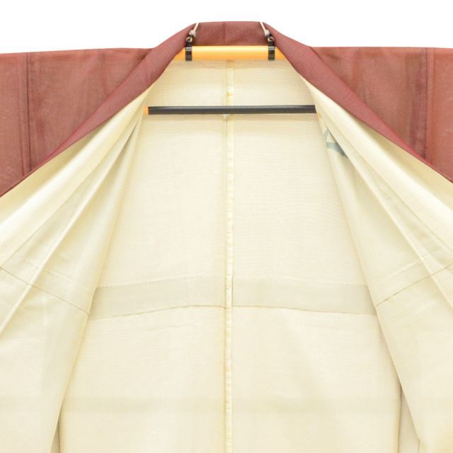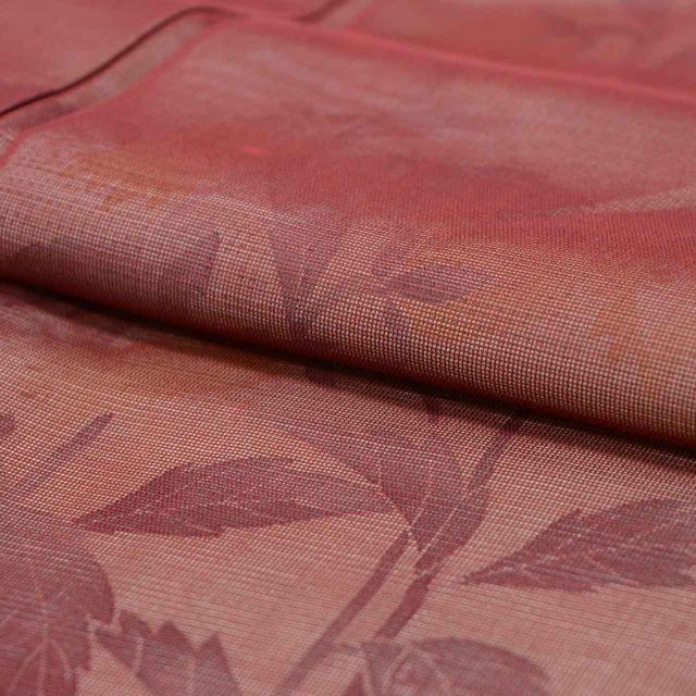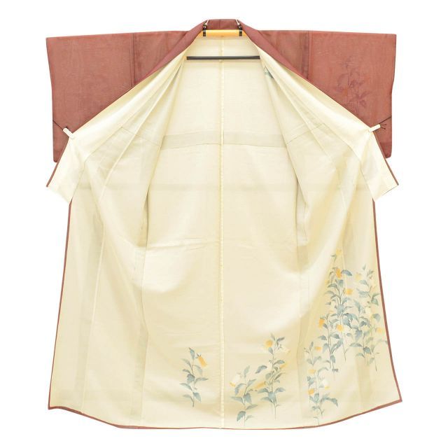 赤茶色に花文様があしらわれた、お洒落なリサイクル付下げです。