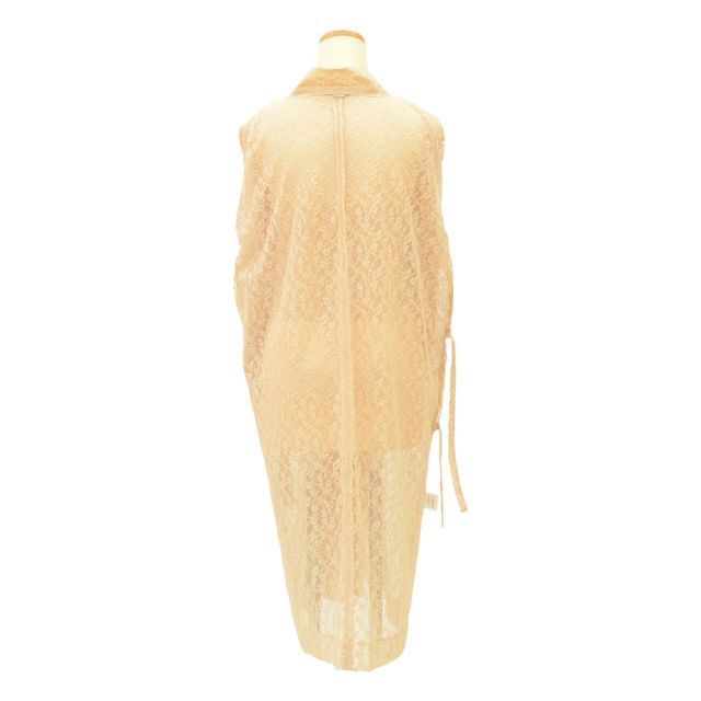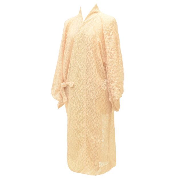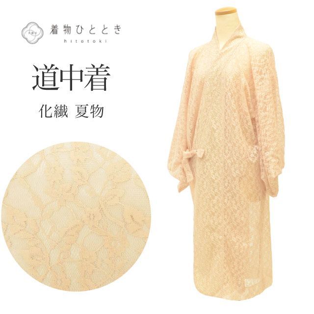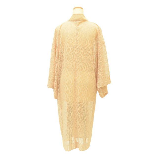 ベージュ色に花唐草文様が施された、ロング丈のリサイクル道中着です。