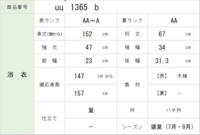 B:着用不可(ダメージがひどく練習用やハギレ用)