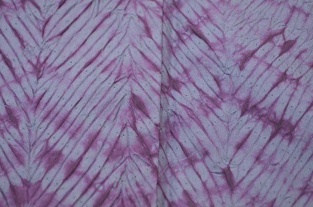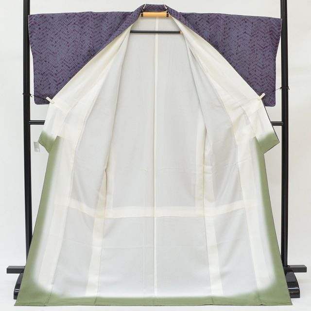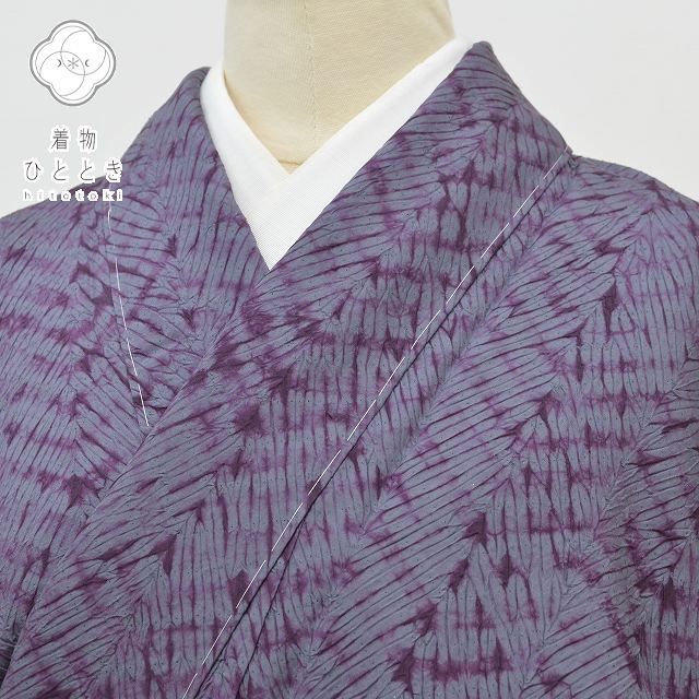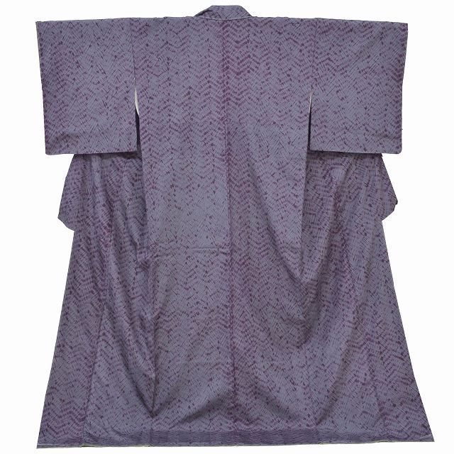 1小紋リサイクル着物正絹仕立て上がり絞り女性モデルサイズ裄69cmL身丈170cmLLトールサイズちょっとふくよかLグレー紫系幾何学文様特選逸品★★★★★pp1995b