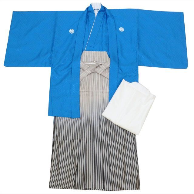 羽織には貼紋の丸に違い鷹の羽の五つ紋がついています。