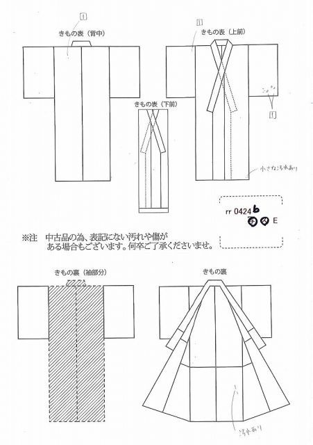 衿の折り山(着用時見えない部分)→目立たない汚れあり