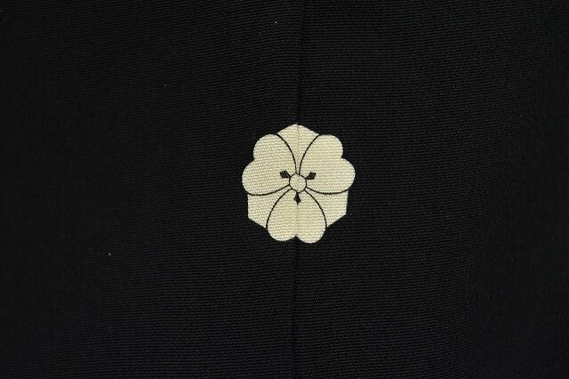 縮緬地に、剣片喰の五つ紋の比翼付きのお着物です。