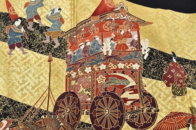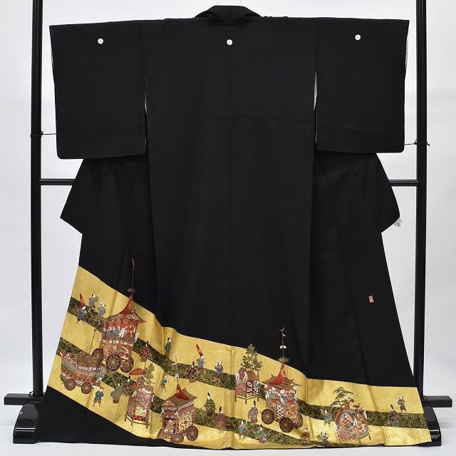 黒色に祭文様が施された華やかな黒留袖です。