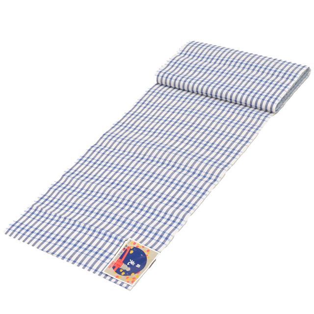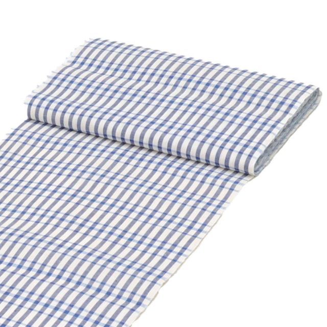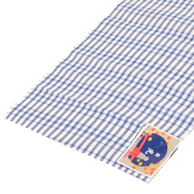 白色に格子文様が施された、女物の夏着物や浴衣のリサイクル反物です。