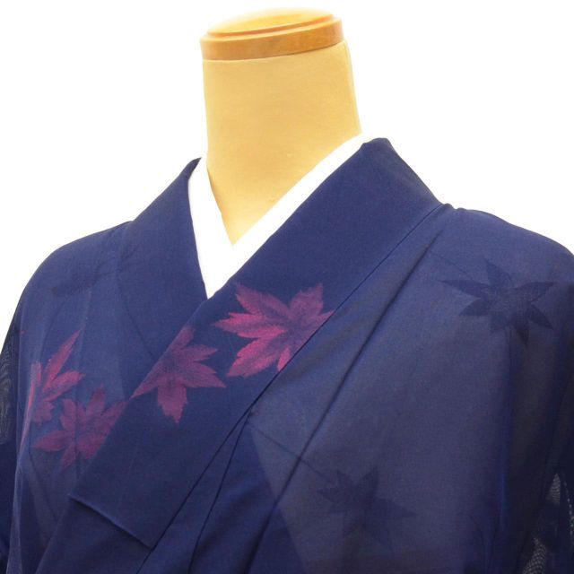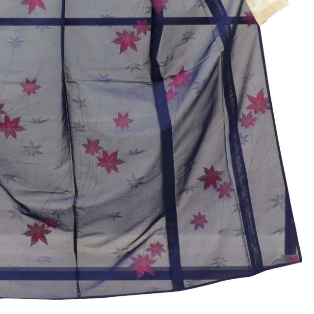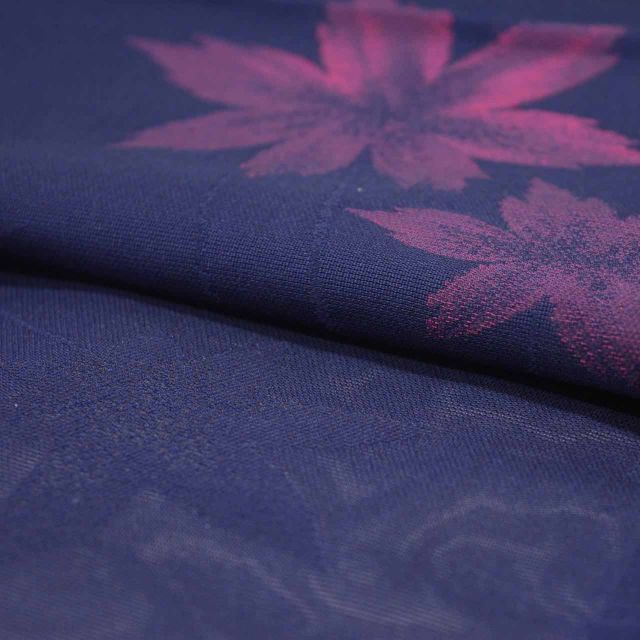 紺色に紅葉文様があしらわれた可愛らしいリサイクル小紋です。
