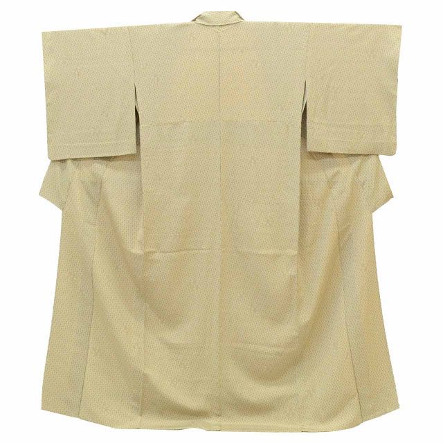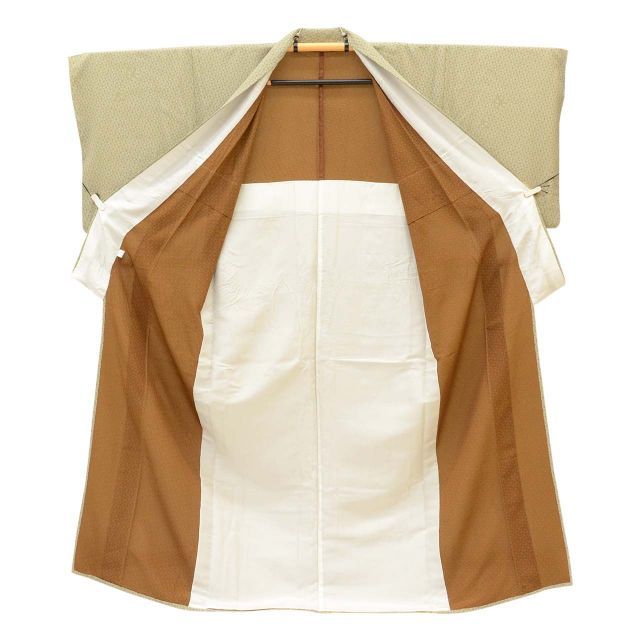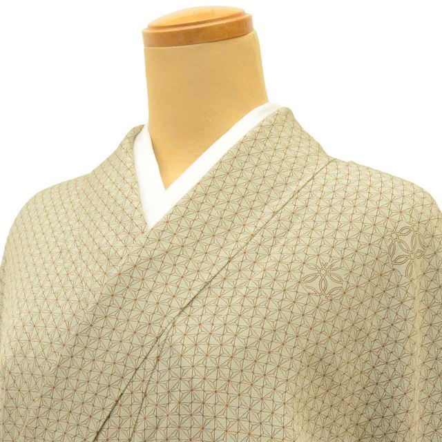 淡緑色に麻の葉文様があしらわれたお洒落なリサイクル小紋です。