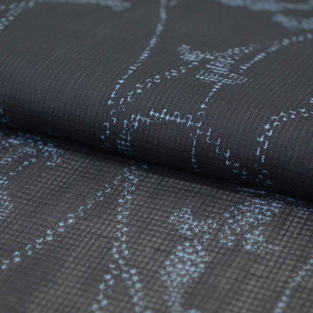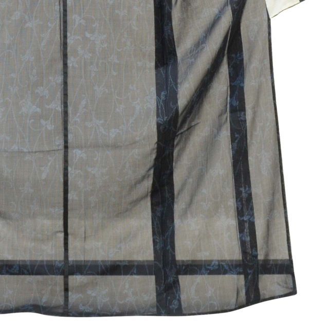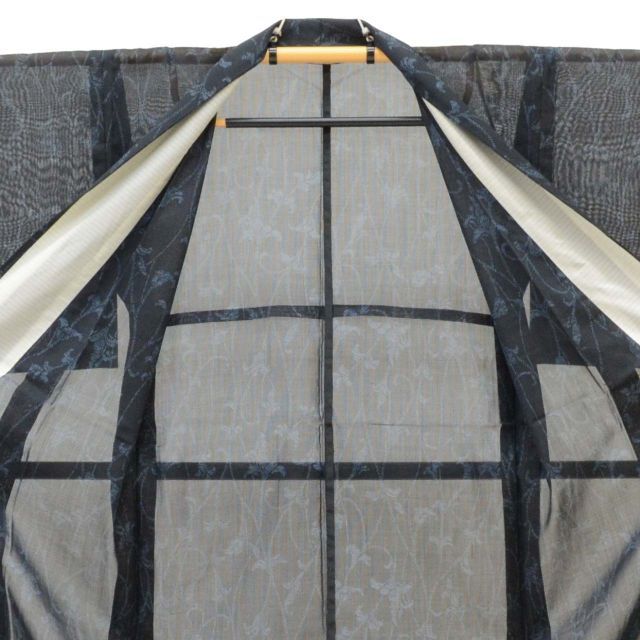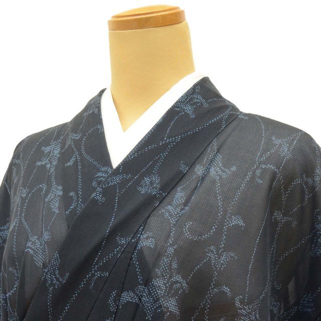 黒色に花唐草文様があしらわれたお洒落な小紋です。