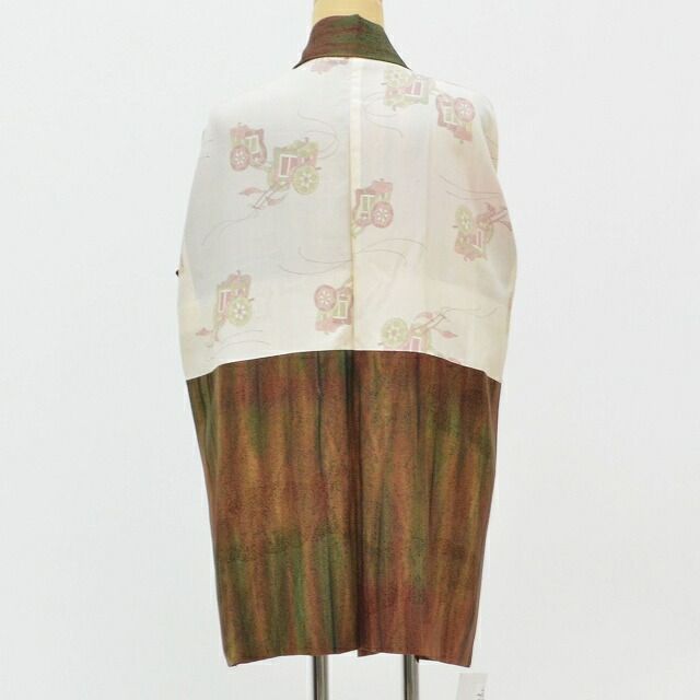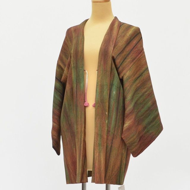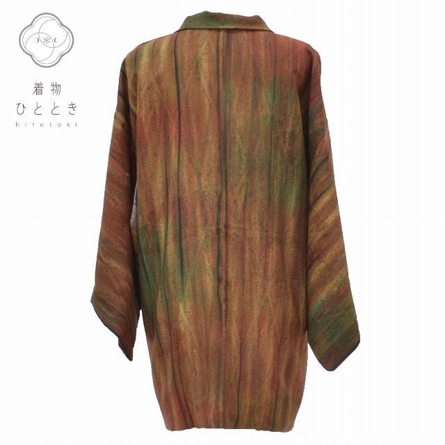 羽織リサイクル中古塵除け秋用冬用正絹はおり羽織紐付身丈79cm裄63.5cm縞に雲取り文様茶系良品★★★mm3380b