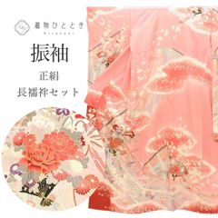 オレンジ色に四季花文様があしらわれた、レトロなリサイクル振袖と長襦袢のセットです。