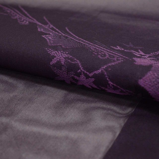 紫色に紅葉文様があしらわれたお洒落なリサイクル小紋です。