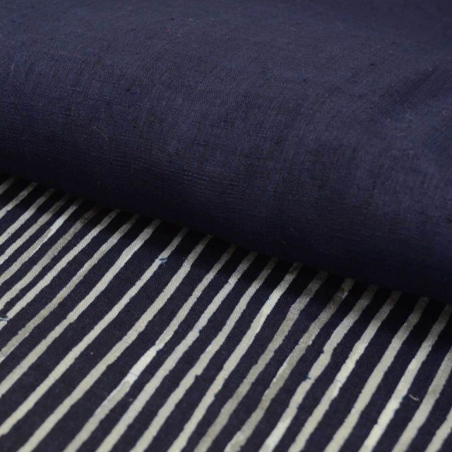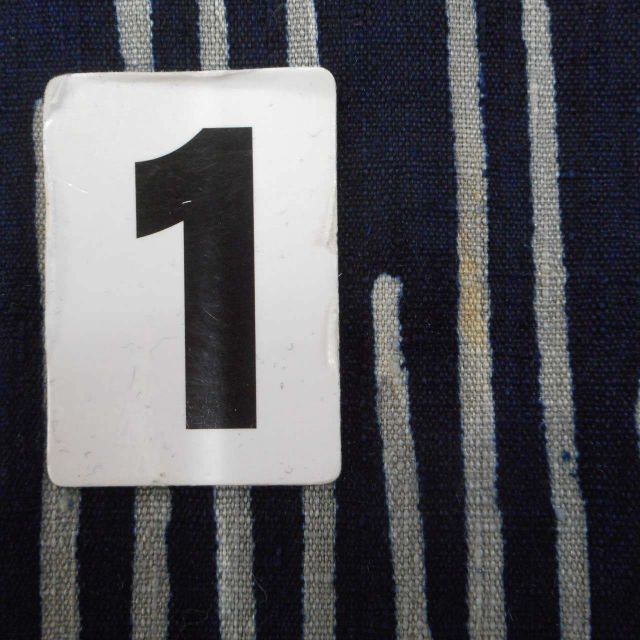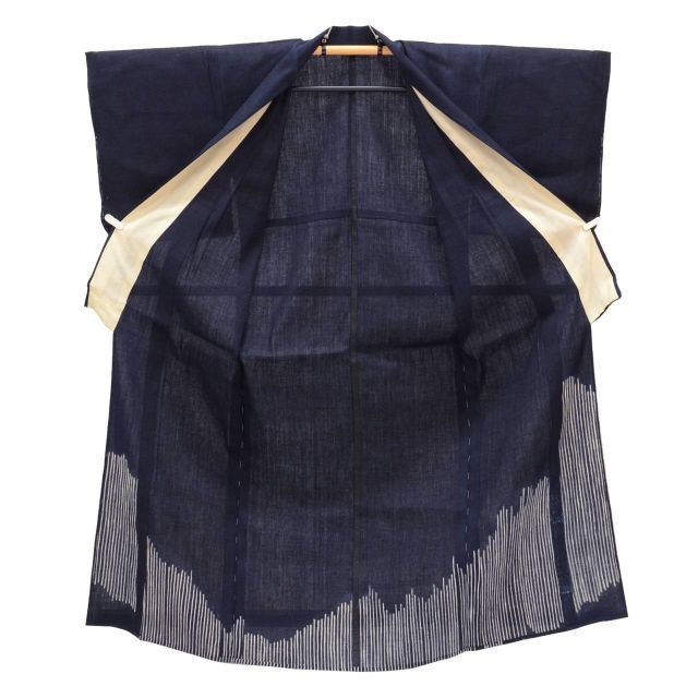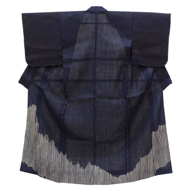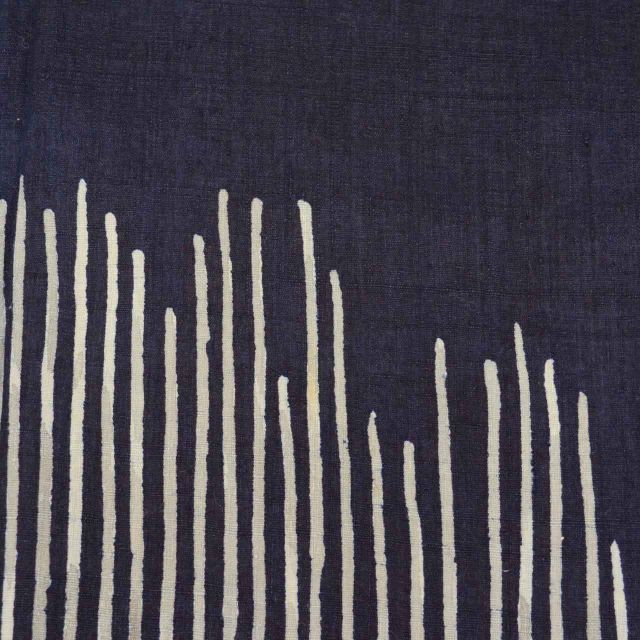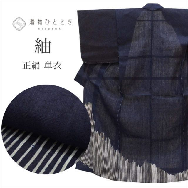紺色に幾何学文様が施された粋なリサイクル紬です。