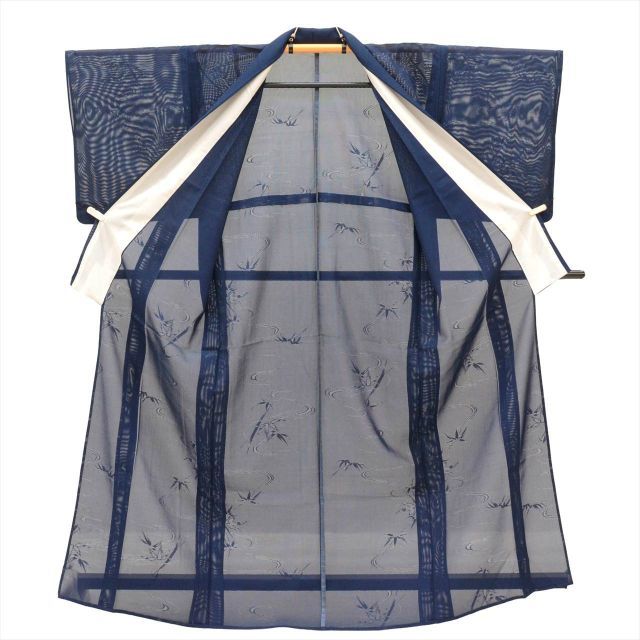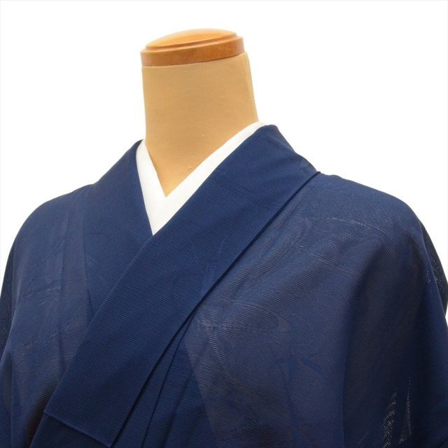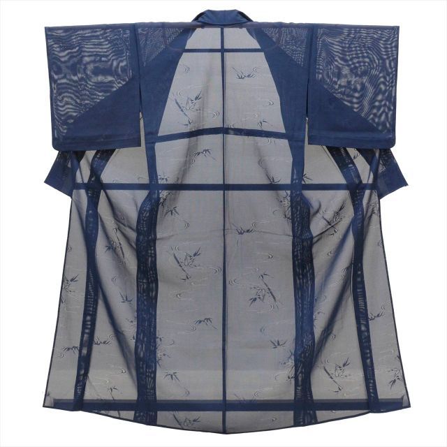 紺色に流水に笹地紋織の上品さが感じられるリサイクルの色無地です。