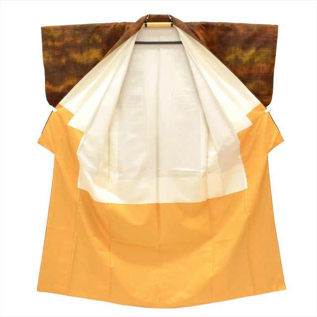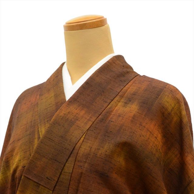 茶色にぼかし文様が施された趣のあるリサイクル紬です。