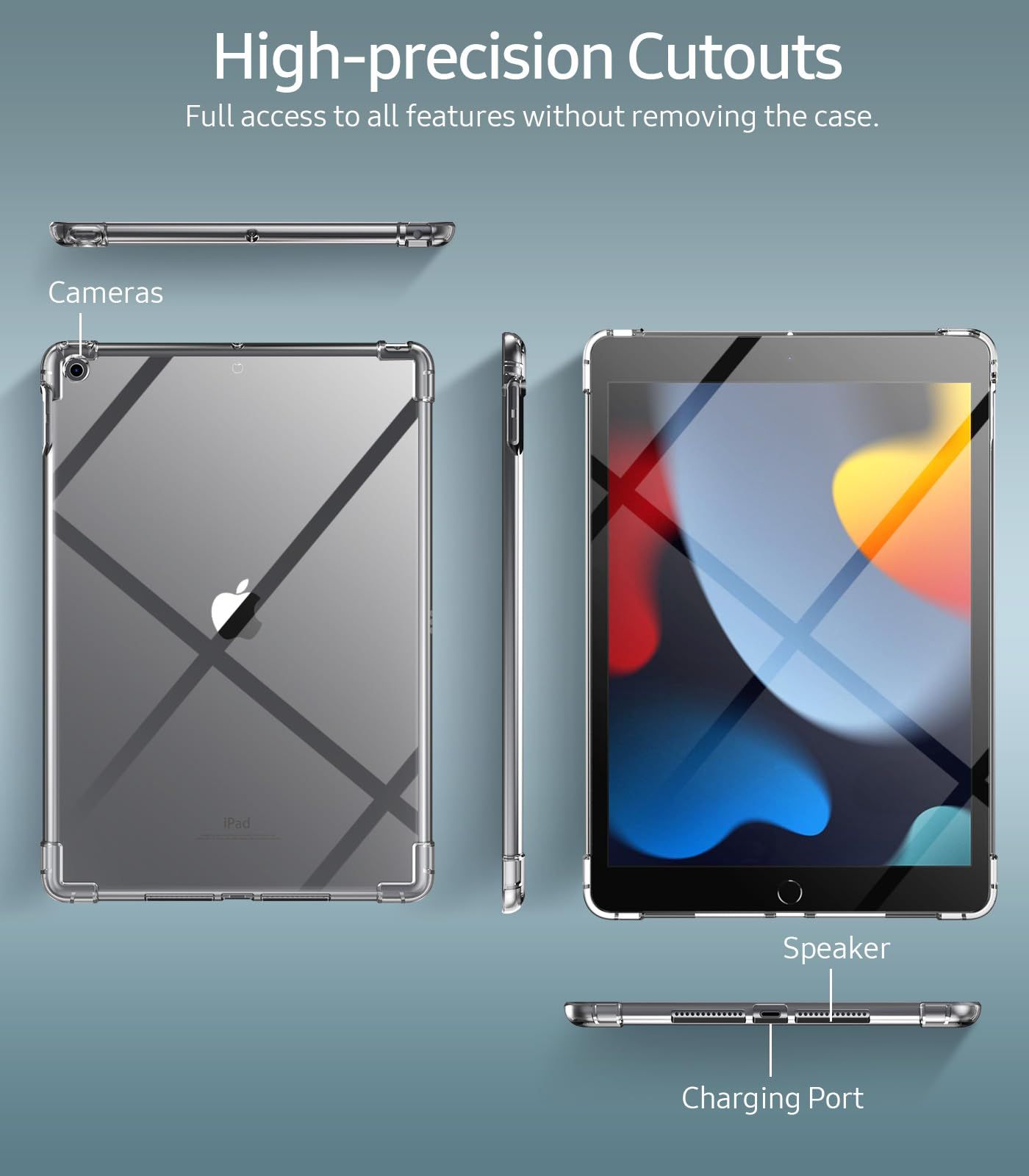 iPad 9世代 ケース クリア TiMOVO iPad 9 ケース 2021 iPad 8 ケース 2020 iPad 10.2 ケース 2019 iPad 第9世代/第8世代/第7世代 10.2インチ ケース 2021/2020/2019モデル タブレット カバー 四角加工 耐衝撃 落下防止 透明TPU製 滑り止め Clear