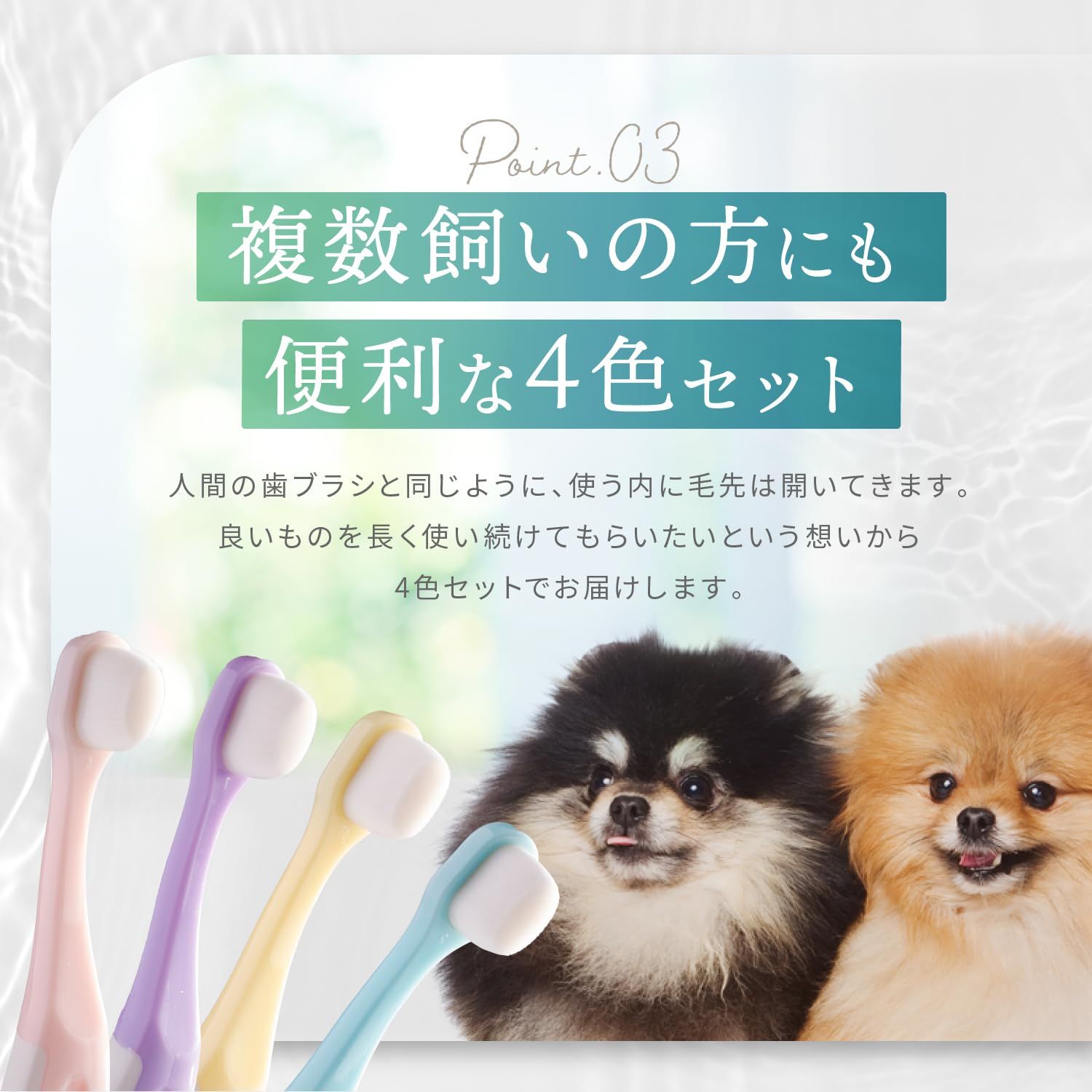 LeLante 犬用歯ブラシ 小型犬【10000本の超極細毛】ペット 猫 ナノ 口腔ケア/柔らかい/歯茎に優しい【犬用・猫用・カラフルな4色セット】