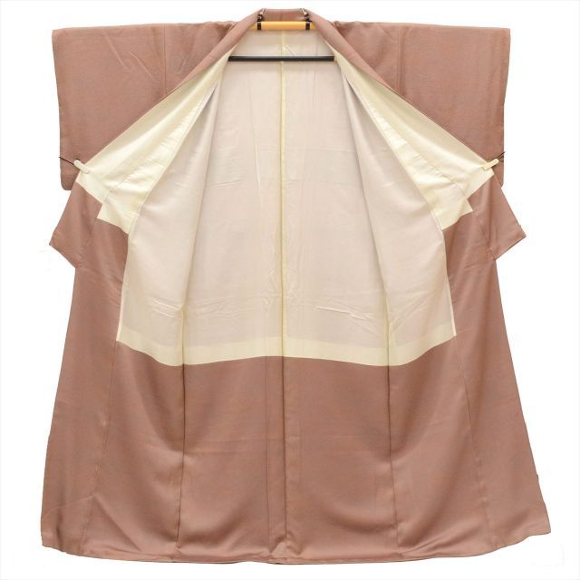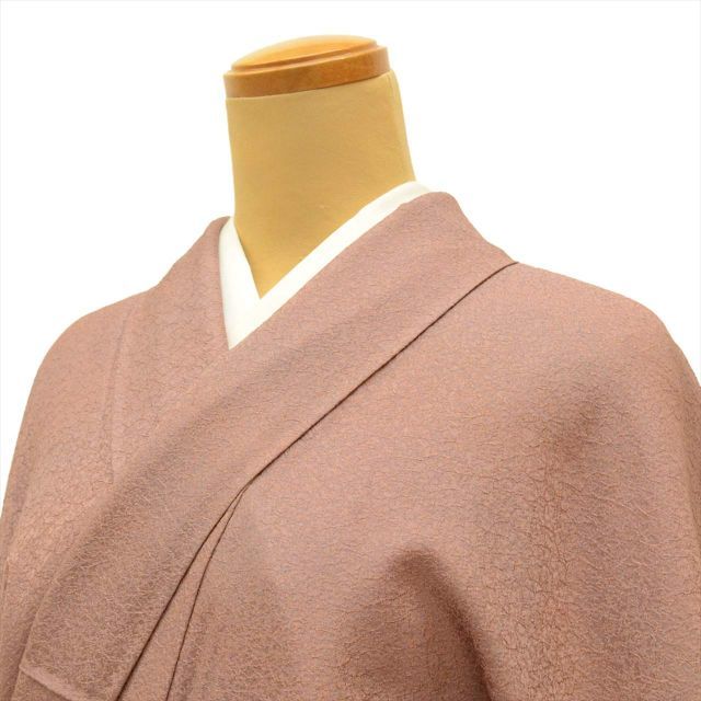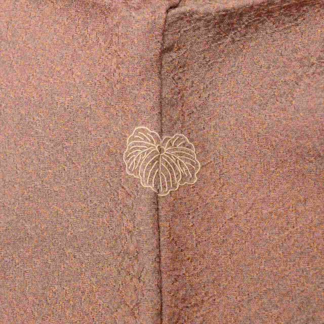 渋紫色のまだら色に氷割地紋織の上品さが感じられるリサイクル色無地です。