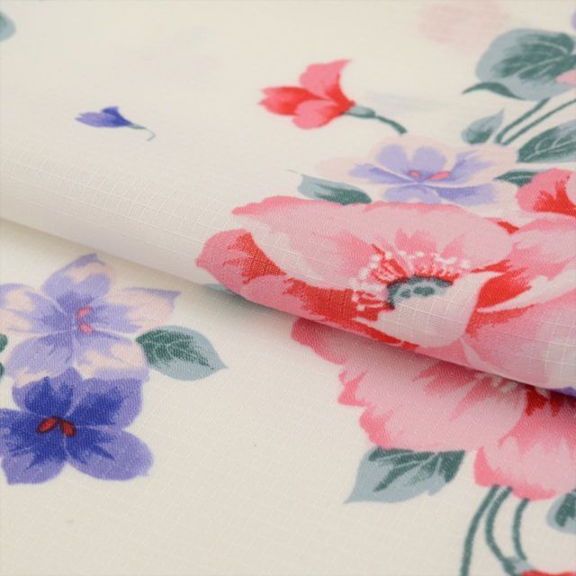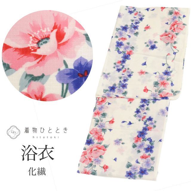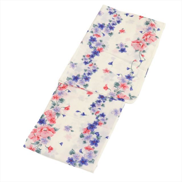 白色に花文様が施された可愛らしい女性用のリサイクル浴衣です。