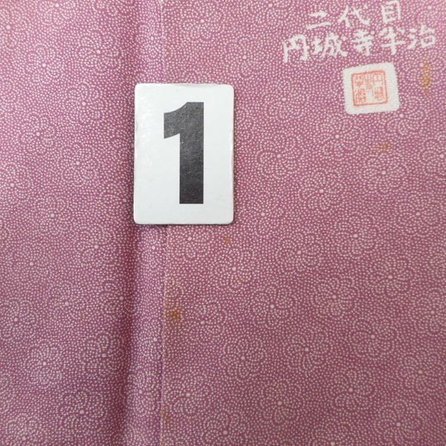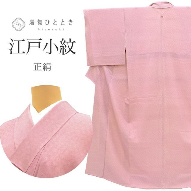 ピンクがかった紫色に花文様があしらわれ、可愛さが感じられるリサイクル江戸小紋です。