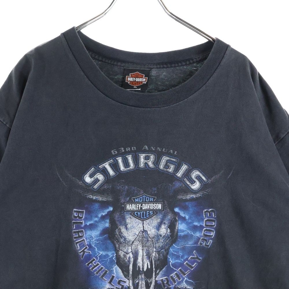 【品名】00s VINTAGE STURGIS LITHNIG THUNDER COW SKULL HOLOUBEK カウスカル ライトニングサンダー 半袖Tシャツ ブラック/ブルー