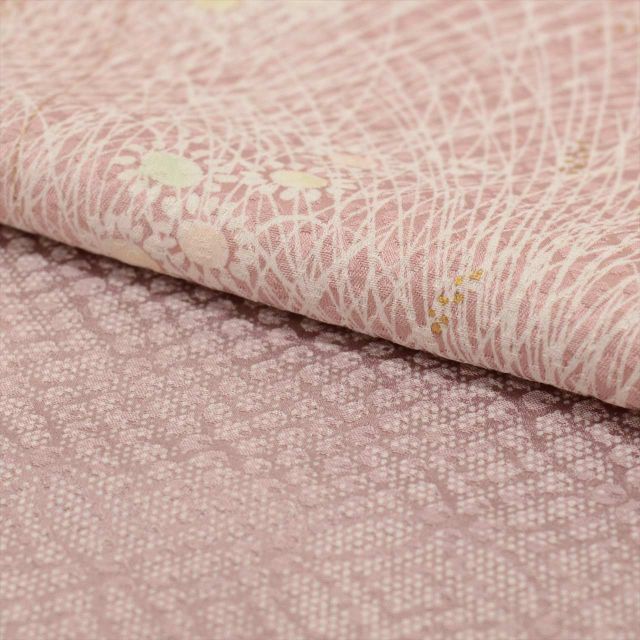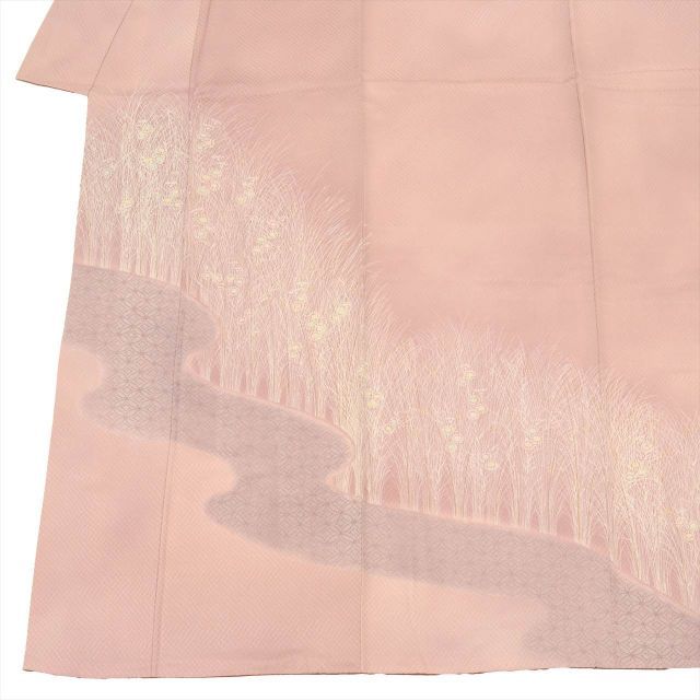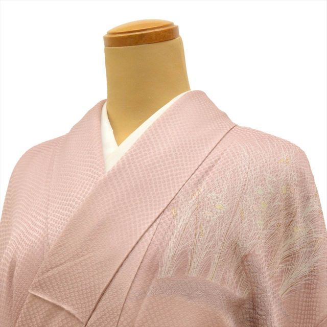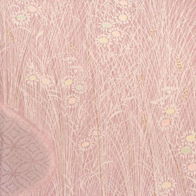 紫がかったピンク色に草花文様があしらわれた上品さが感じられるリサイクル付下げです。