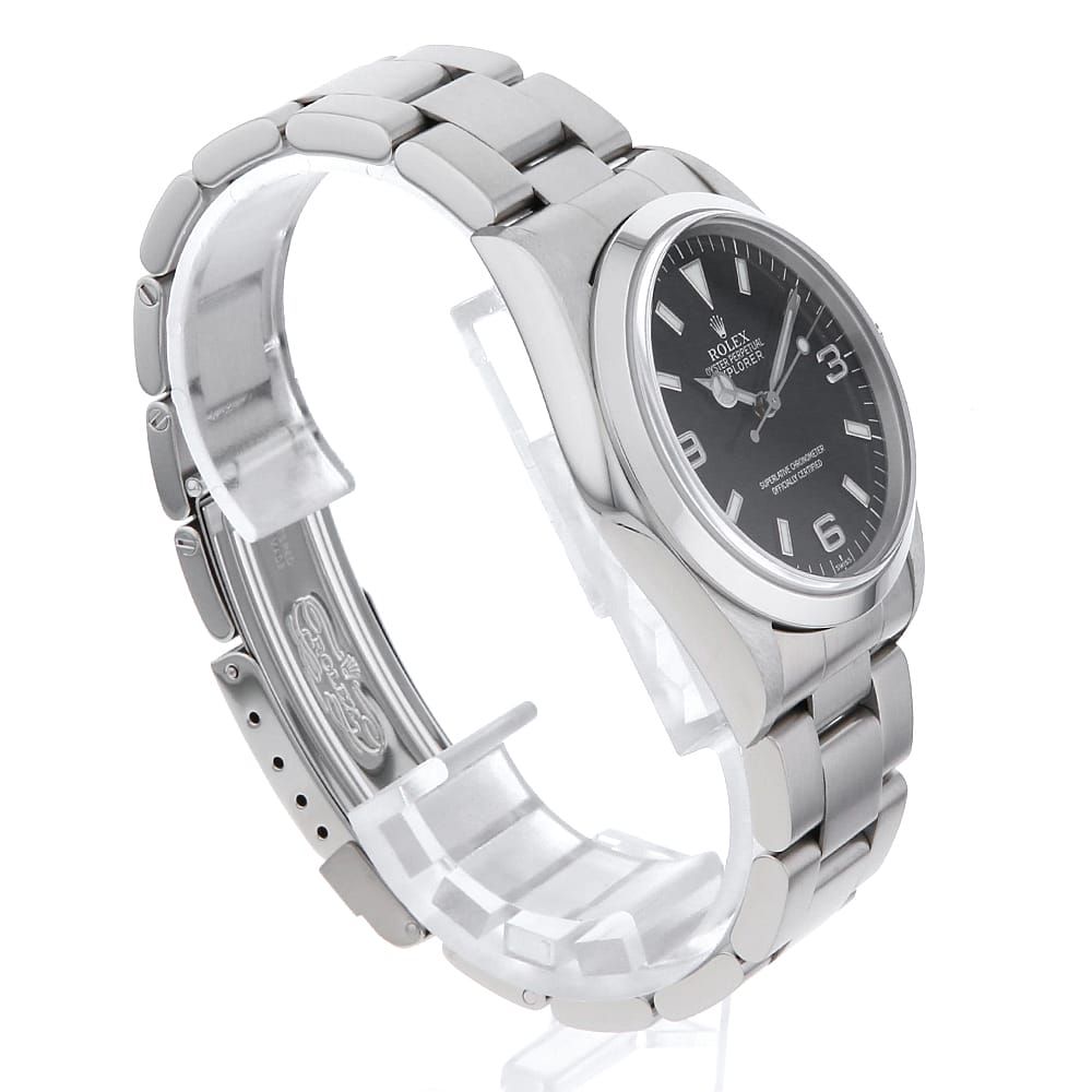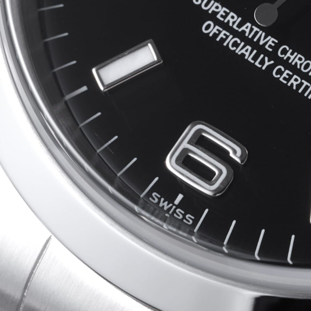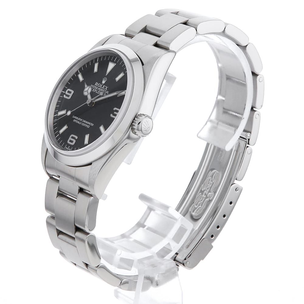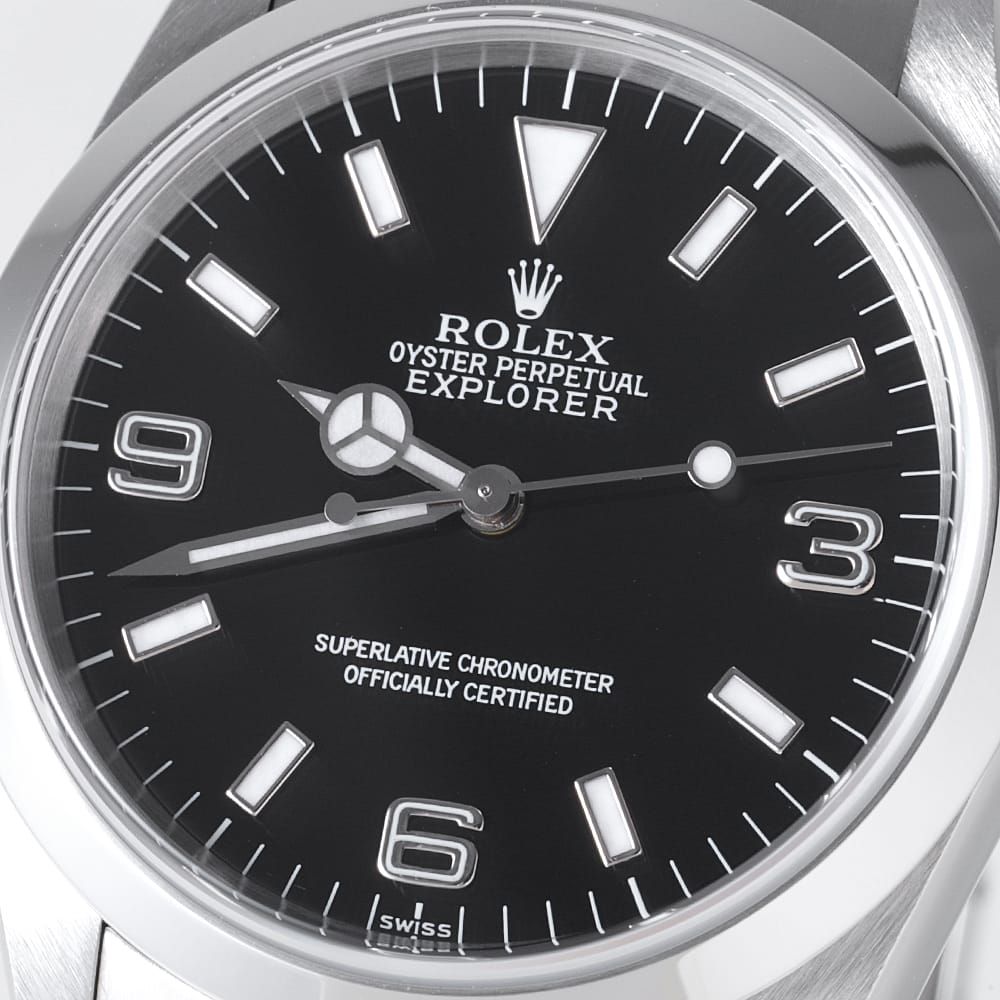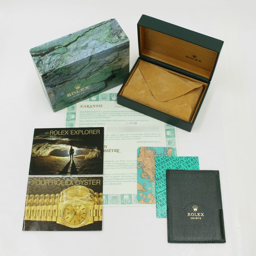 ■モデル情報:「探検家」と名付けられた\"エクスプローラーI\"。こちらは、ロングセラー「1016」の後継機として1990年に誕生したモデルです。1016から大幅にダイアルデザインが改良されており、現行エクスプローラーのデザインの礎を築きました。搭載するムーブメントはCal.3000。傑出したロレックスの基幹モデルとして、生産終了して今なお中古市場で高い人気を誇ります。14270のダイアル6時位置の表記は大きく分けて3種類あり【初期(T SWISS-T<25)、中期(SWISS)、後期(SWISS MADE)】となります。
