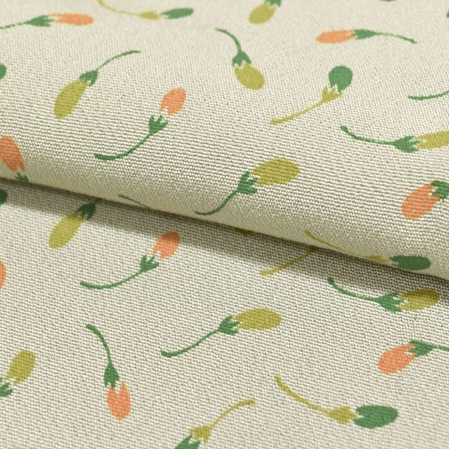 グレー色に茄子文様があしらわれた、お洒落なリサイクル小紋です。