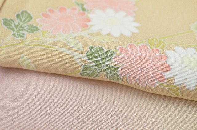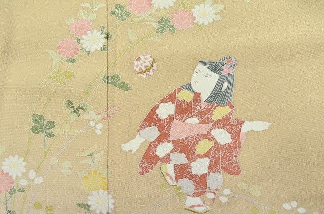 ベージュ色に童や花文様があしらわれた上品さが感じられます。