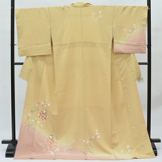 リサイクル付下げ正絹仕立て上がり袷リサイクル着物身丈167.5cmLL裄67.5cmLちょっとふくよかLベージュ色系童花文様特品★★★★qq0976b