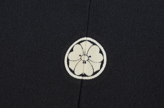 縮緬地に、滅に剣片喰の五つ紋の比翼付きのお着物です。